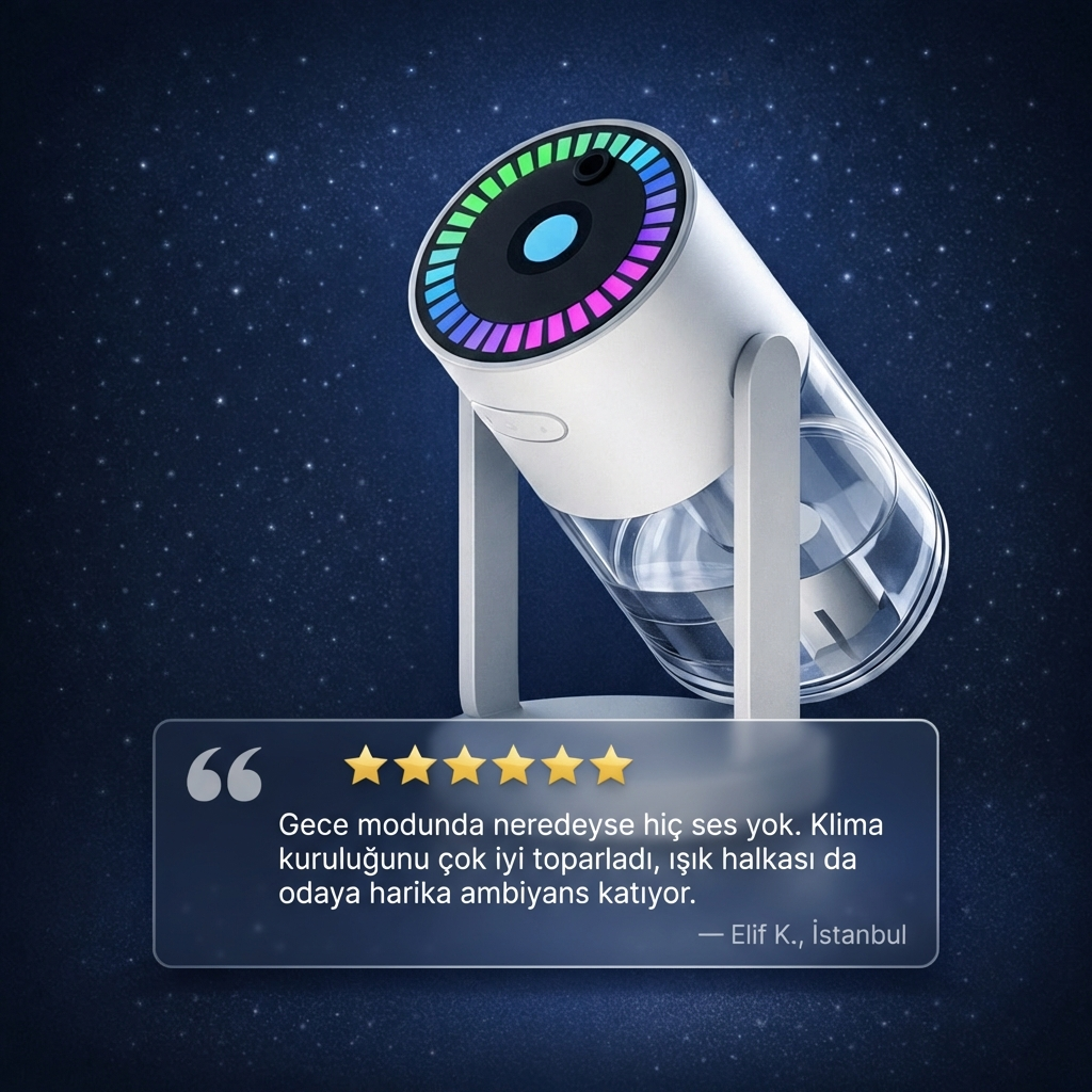 Ayluna, duvara gerçekçi Yıldız yansıması vererek bulunduğun alanı anında daha sıcak ve huzurlu hale getirir. Yumuşak ışığıyla gece kullanımı için idealdir.